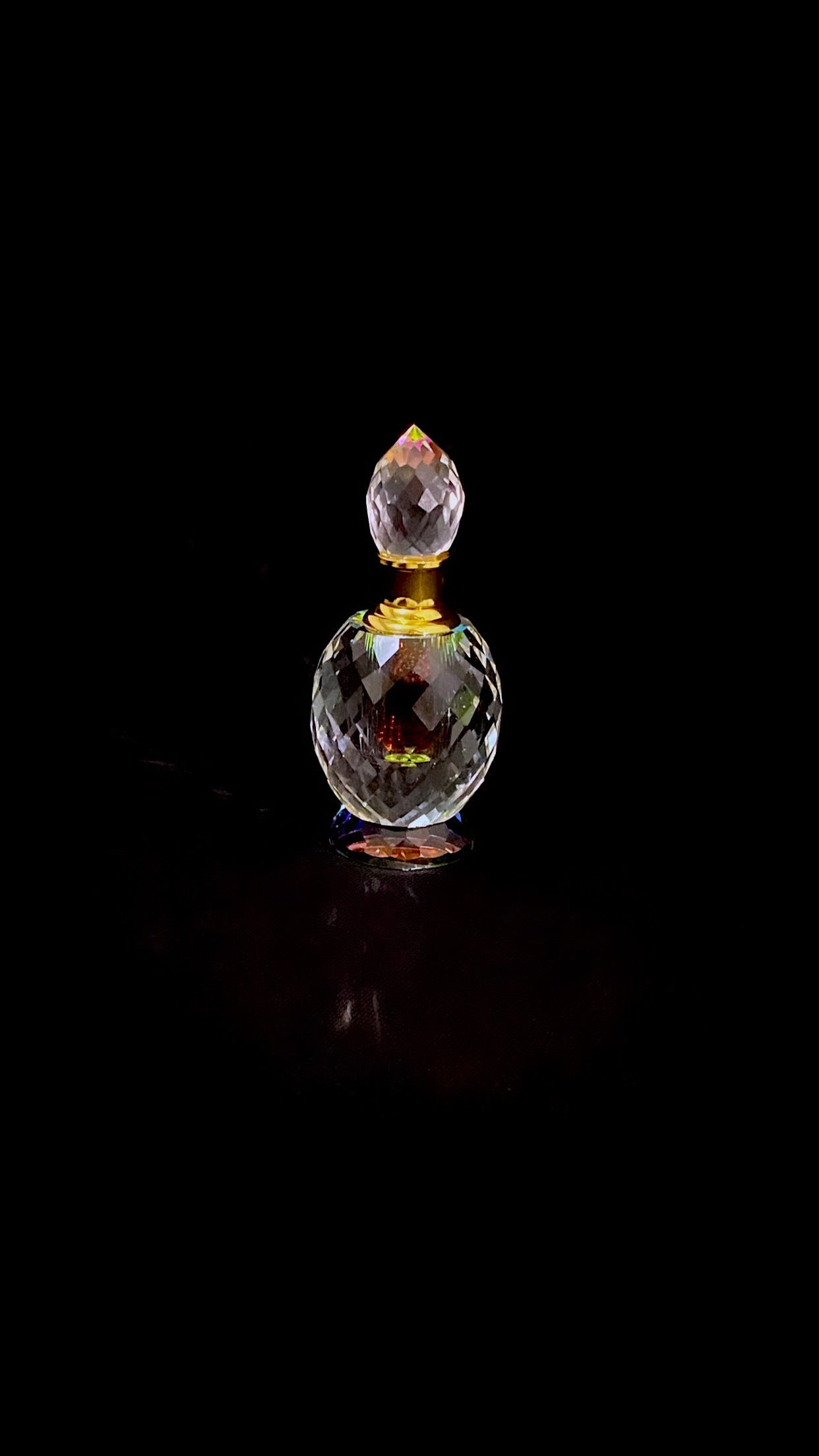 يصلكم في غرشة كريستال راقية وصندوق جلد فاخر جميل احرص على الجودة المنتج ، و مناسب للاهداءات.